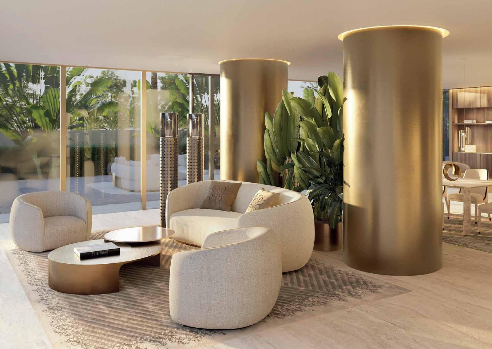 • Apartments are delivered with designer finishes, high-quality fixtures, and select ELIE SAAB furnishings; optional turnkey furnishing packages may be available.