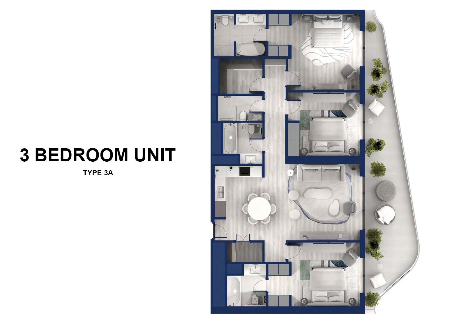 - 4 Bedroom Apartments: Premium units with expansive living areas, multiple bathrooms, and ample storage.