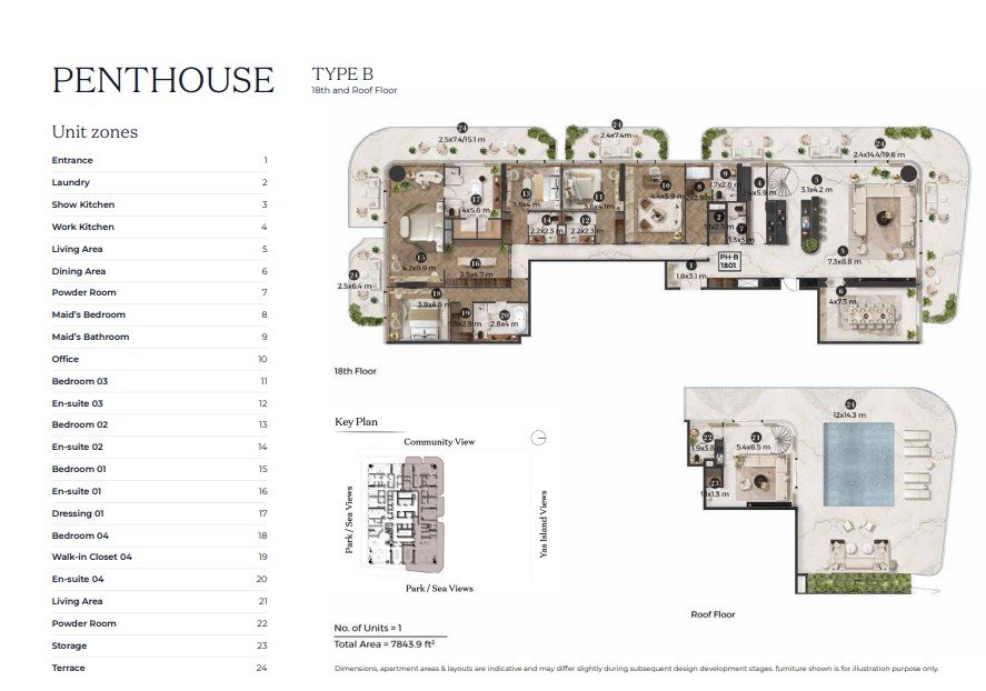 • Units at STELLAR by ELIE SAAB range from 758.6 sqft to 7,843 sqft, including 1, 2, and 3 bedroom apartments, garden villas, and penthouses. Starting prices begin at approximately AED 2.2 million for a 1 bedroom unit.