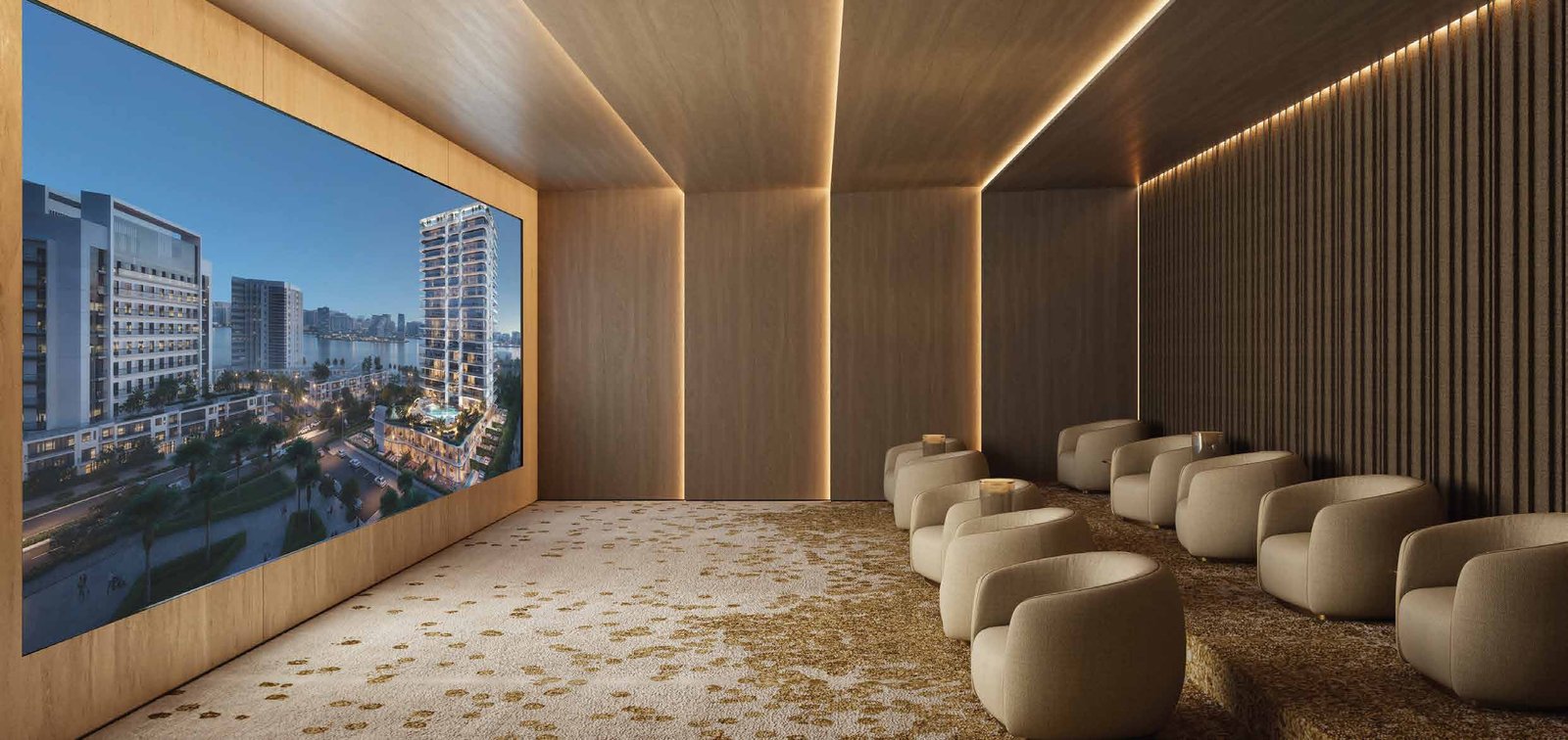 • Apartments are delivered with designer finishes, high-quality fixtures, and select ELIE SAAB furnishings; optional turnkey furnishing packages may be available.